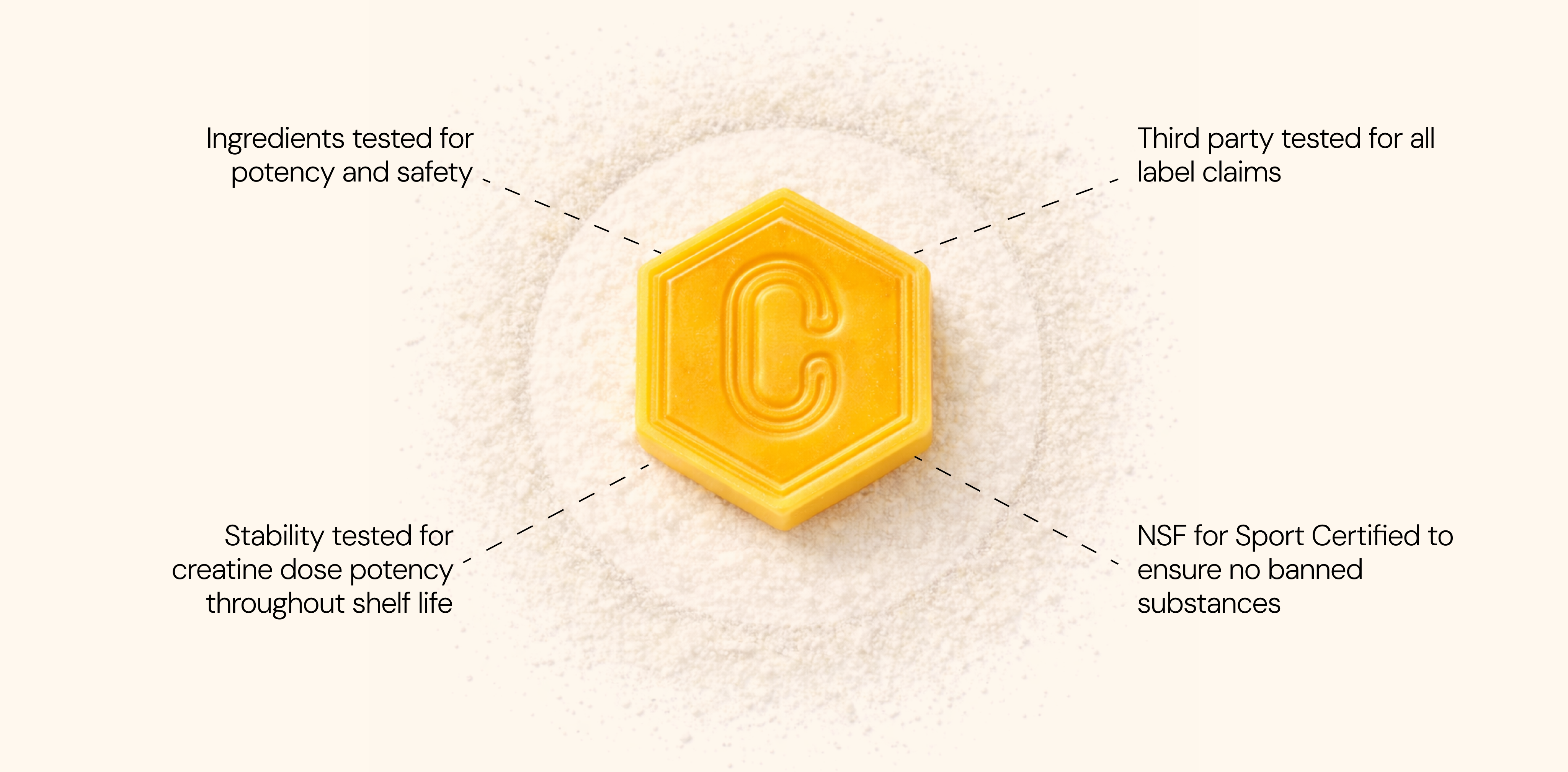 100% of Create’s purity and potency testing is third-party, so you can check our work. And every batch is NSF Certified for Sport®, so you can trust it meets the highest standards of safety and transparency with no banned substances.