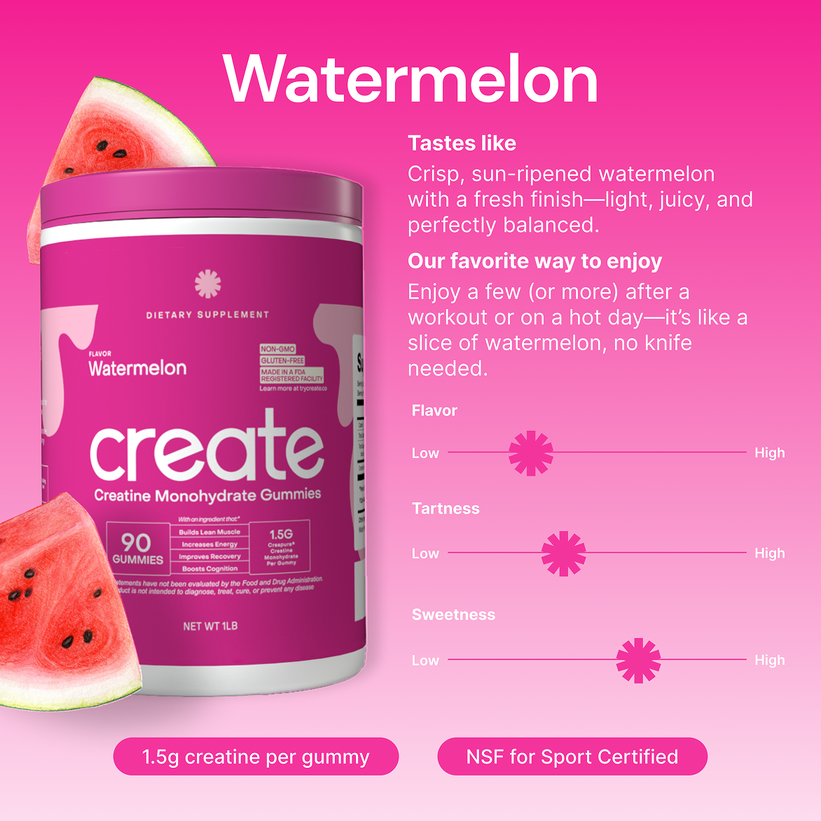 Core Gummies - Watermelon: Creatine Monohydrate, Tapioca Syrup, Sugar, Allulose, Reverse Osmosis Water, Pectin, Natural Watermelon Flavor, Natural Red Color, Citric Acid