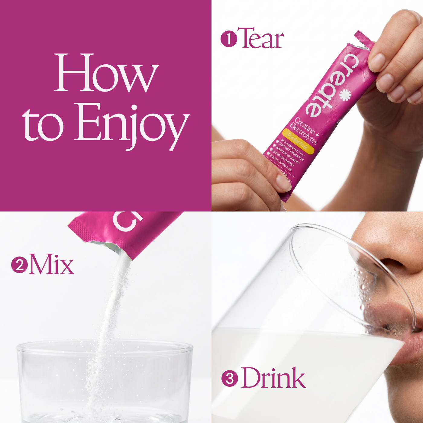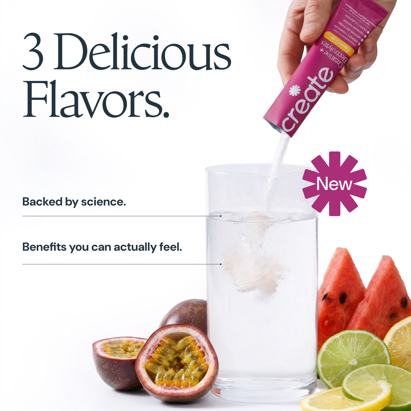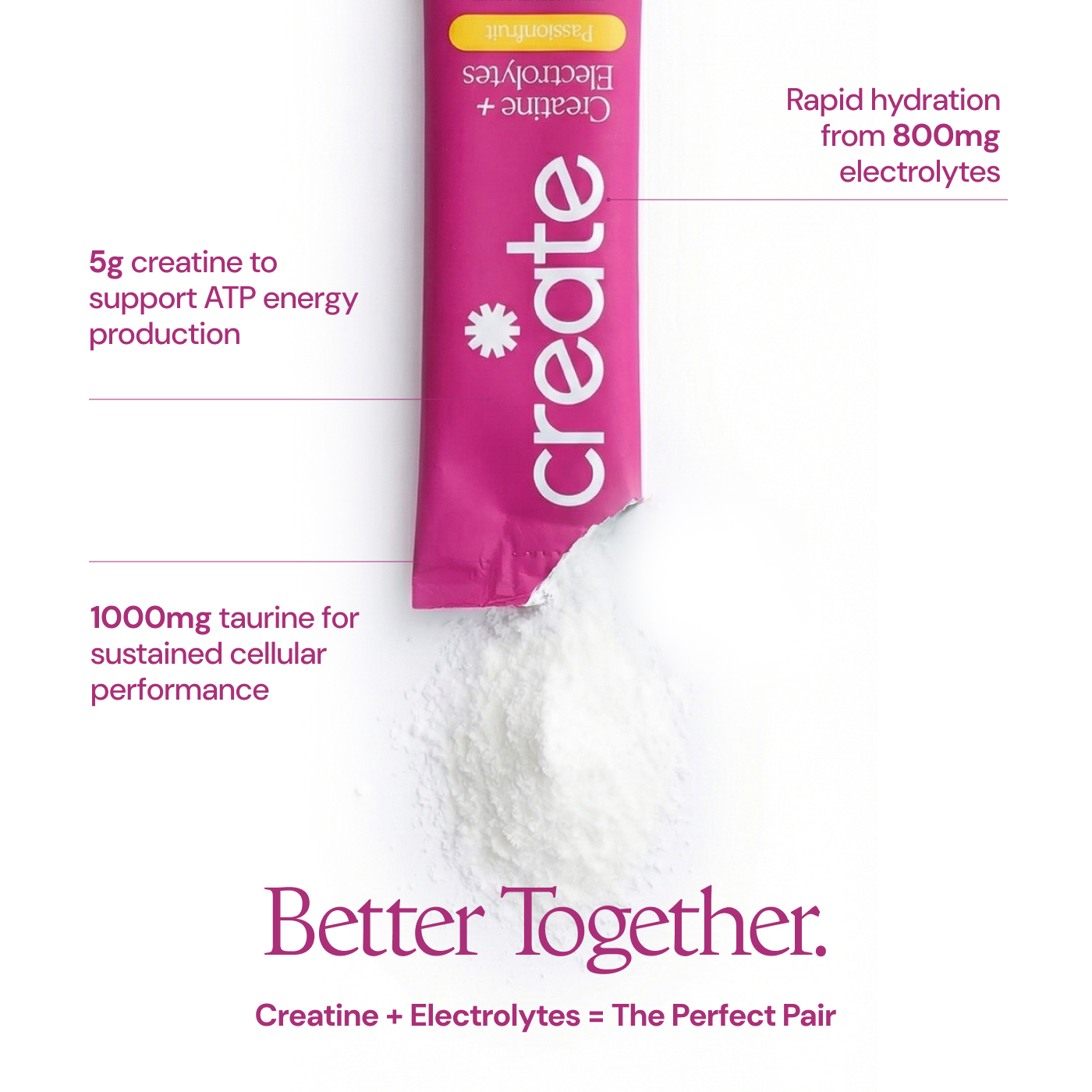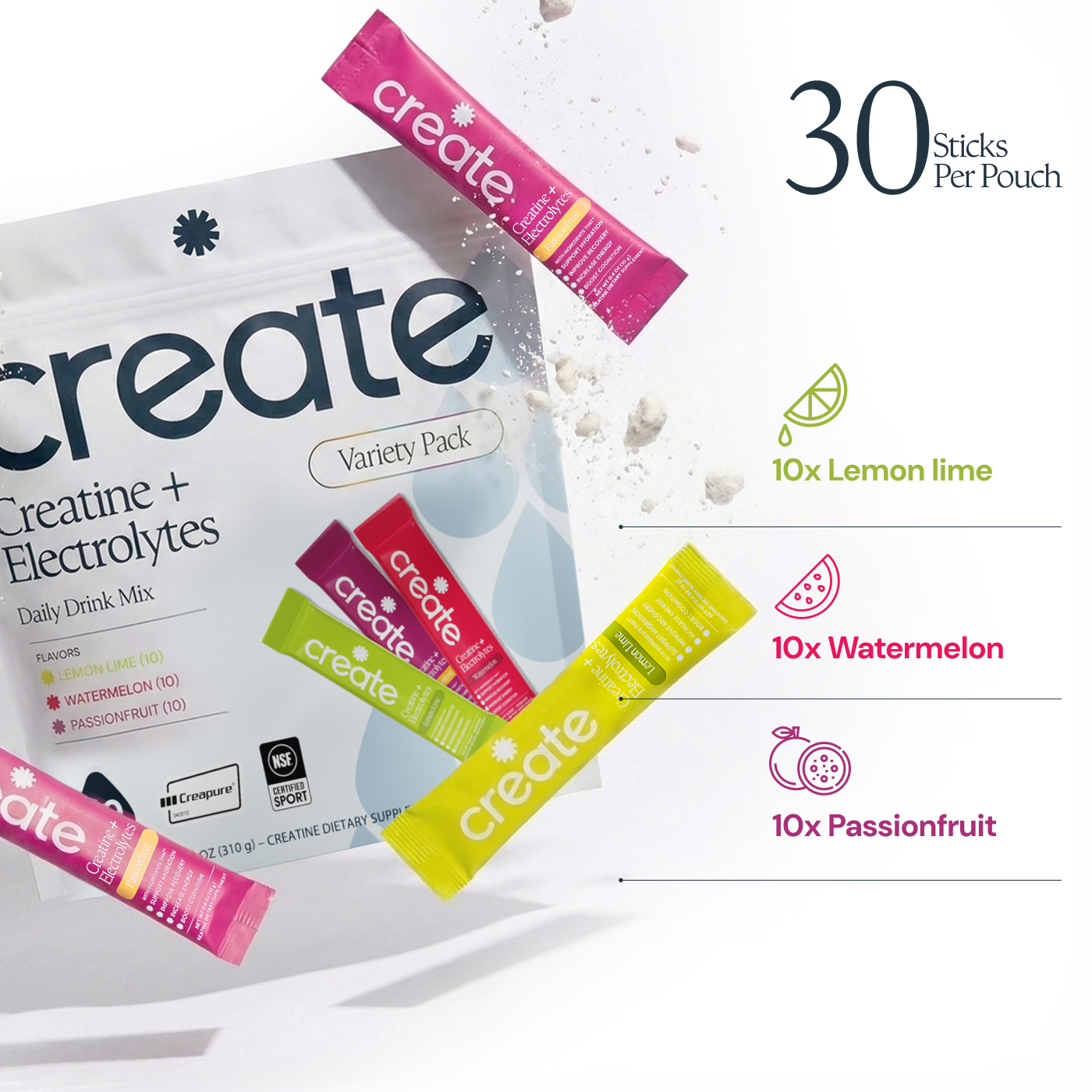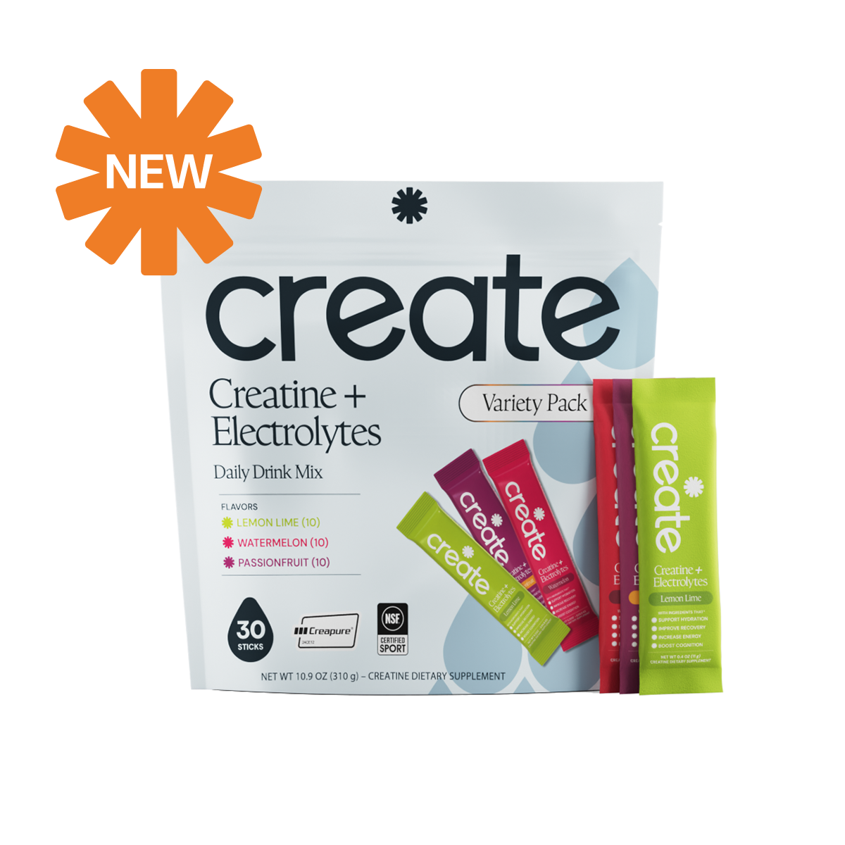 Passion Fruit: Creatine Monohydrate, Sodium, Potassium, Magnesium, Taurine, Other Ingredients: Sea salt, citric acid, tartaric acid, natural flavoring, malic acid, OnoSweet (Reb-M 95%)
