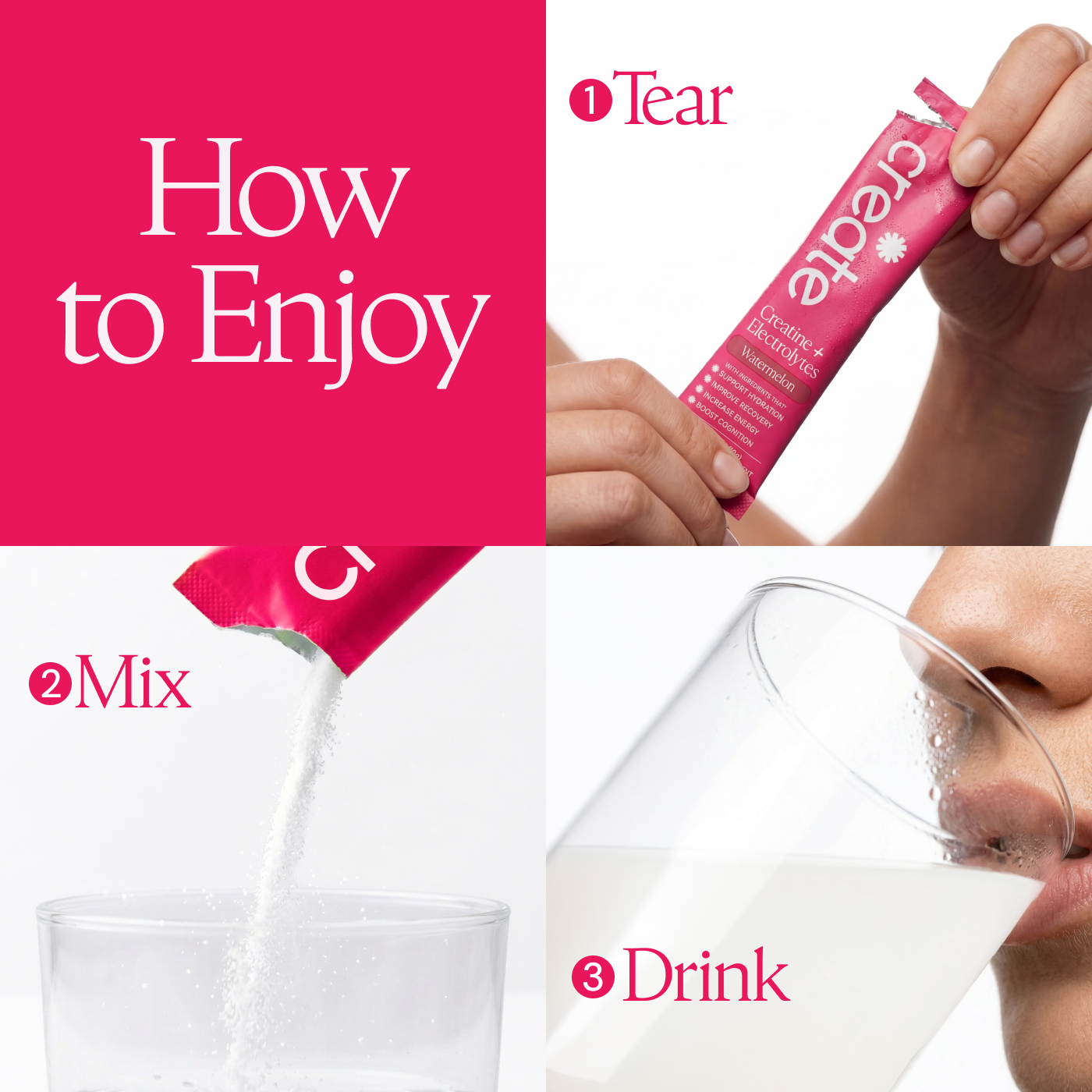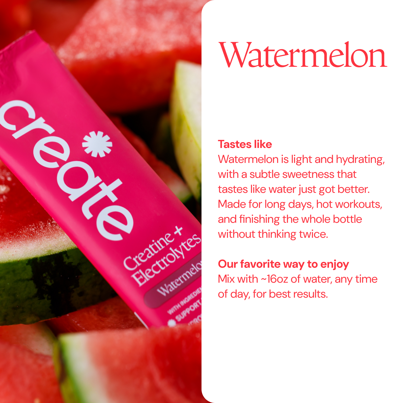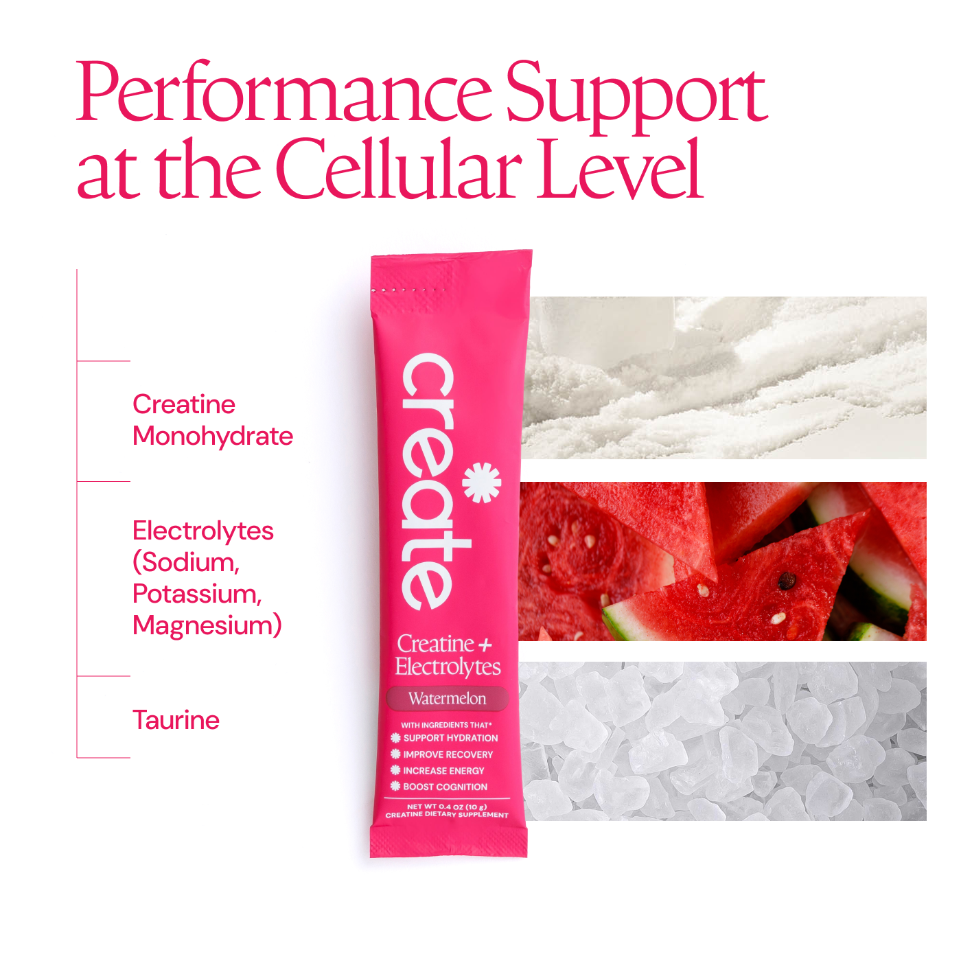 Watermelon: Creatine Monohydrate, Sodium, Potassium, Magnesium, Other Ingredients: Sea salt, citric acid, natural flavoring, malic acid, OnoSweet (Reb-M 95%)